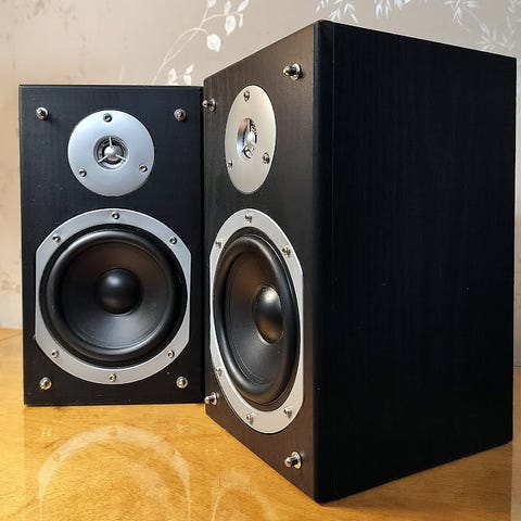 Ehjät ja hyvin soivat kaiuttimet tasolle tai jalustalle. Mitat: 24x16x26cm (KxLxS)