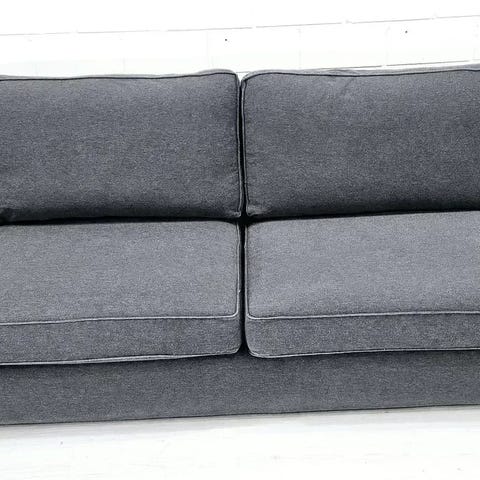 Sohva on hyvässä kunnossa. Päälliset juuri pesty. Päälliset ovat irrotettavat runko myöden. Mitat Leveys 230cm, syvyys 90cm. Väri tummanharmaa.