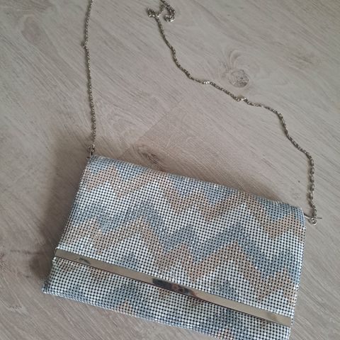 Myydään näyttävä ja elegantti juhlalaukku, jossa runsas helmikirjailu ja paljettikoristelu. Ajaton musta–hopea sävy tekee laukusta helpon yhdistää juhla- ja ilta-asuihin. Mukana pitkä ketju, joten laukkua voi käyttää myös olkalaukkuna.