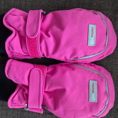 Kahdet mustat vedenpitävät toppakäsineet Reimatec Tartu mallinimellä. Näissä vielä heijastin kämmenselässä.