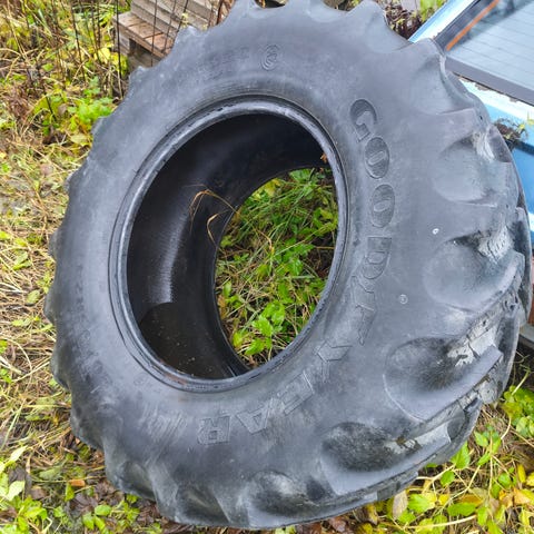 Käytetty takarengas 12.4/11-36. Kulutuspinta on hyvä. Kyljet on vanhalle renkaalle tyypillisesti täynnä pieniä halkeamia mutta kudokset on ehjät. Soveltuu pihatraktoriin mutta ei kannata laittaa raskaaseen käyttöön. Tarvittaessa voin laittaa myös vanteelle pientä korvausta vastaan. Kuvassa näkyvä vanne ja sisärengas eivät ole myynnissä.
