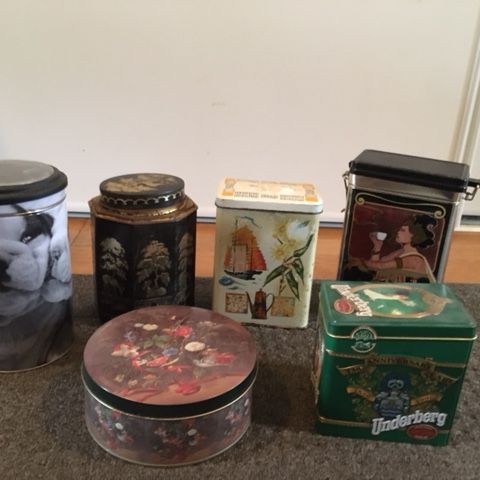 peltipurkit toinen ylhäältä ilman kantta,kolmas ylhäältä kantta leikelty kaikki yht.8e