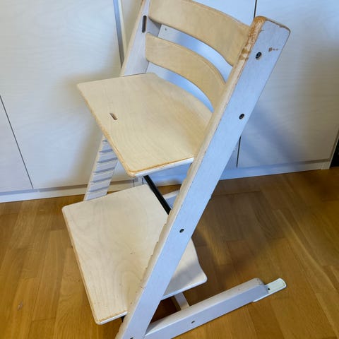 Stokke Syöttötuoli/lasten tuoli, vaaleanpunainen tai harmaa ruudullinen pehmuste mukaan. Vaalea natural.