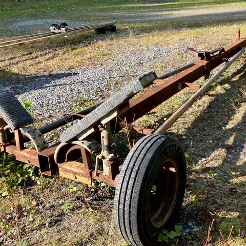 Traktorivetoinen ison veneen traileri aihio. Rakenna itse omalle veneelle sopivaksi.