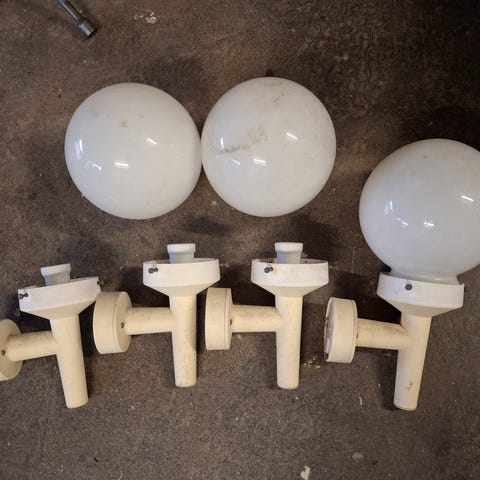 Myydään kuvassa oleva Enston AVR 3 pallokupuinen valaisin rasialla ja kuvassa oleva toinen samanlainen pallokupu, jossa on standardi 85 mm kierre. Molemmat kuvut on opaalimuovia ja halkaisijaltaan 160 mm. Sopii varastoihin, kuiviin tiloihin, kellareihin tai ulos. Max 60 W lamppu normaalilla E27 kannalla.