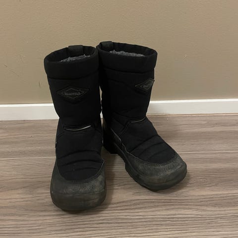 Kuoma lasten talvikengät, koko 29, väriltään punainen sydänkuvioilla ja heijastavilla yksityiskohdilla. Yhden talven käytetty.