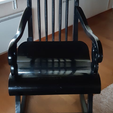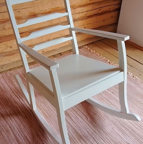 Puusepän tekemä tukevaliitoksinen keinutuoli. Ajan patinoima kiikkustuoli vanhaa arvostalle.