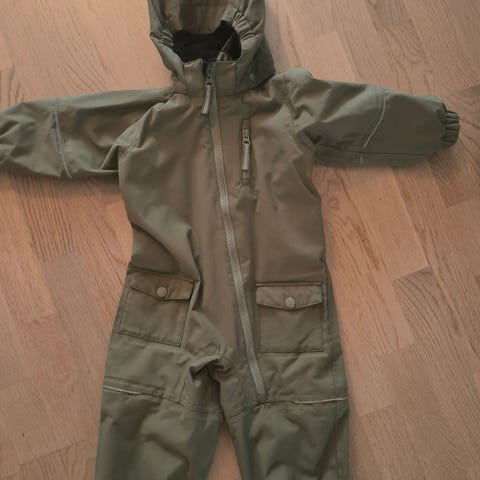 Välikausihaalari irrotettavalla fleecevuorilla. Vetoketju aukeilee joskus, mutta pysyy kiinni kun sulkee uudestaan. Jalkalenkit puuttuvat ja yksi nappi on irti (saa mukaan).