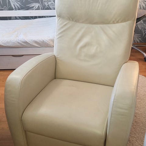 Siisti ja toimiva mekanismi lepotuoli myytävänä. Mekanismille ei ole vipuja vaan toimii henkilön painolla ja jalkavoimin. Kangas ehjä ja siisti. Ei hajuja.