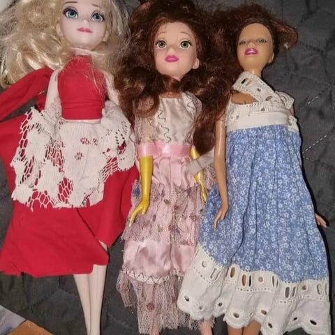 Myydään kaikki kuvassa näkyvät tavarat. Yhdeltä barbilta jalka irti, mutta saa varmasti painamalla takaisin.