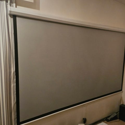 92" Draper luma (203 x 114 cm) harmaasävyinen projektorikangas. Ripustettava kattoon.