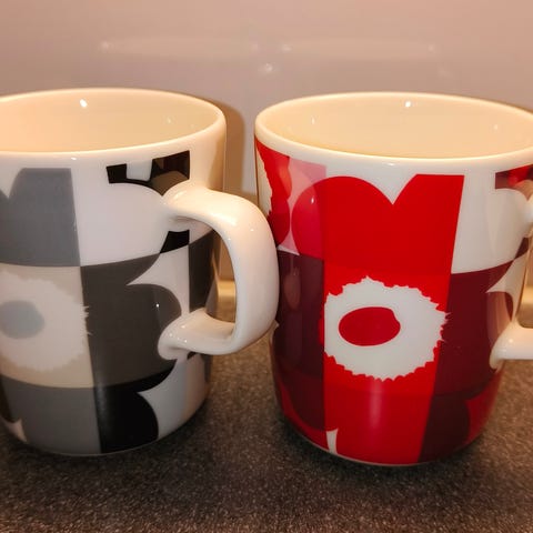 Uudet, myyntipakkauksessa olevat Unikko mukit 2kpl.Väri tummansininen/pinkki/valkoinen.