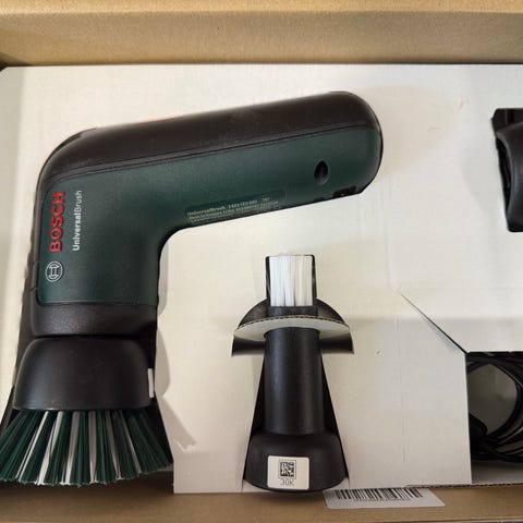 Bosch UniversalBrush sähköinen puhdistusharja 3.6V, paino 0.33 kg. Akkujärjestelmä 3.6V litiumioni. Mukana vaihdettavat harjat eri puhdistustarkoituksiin.