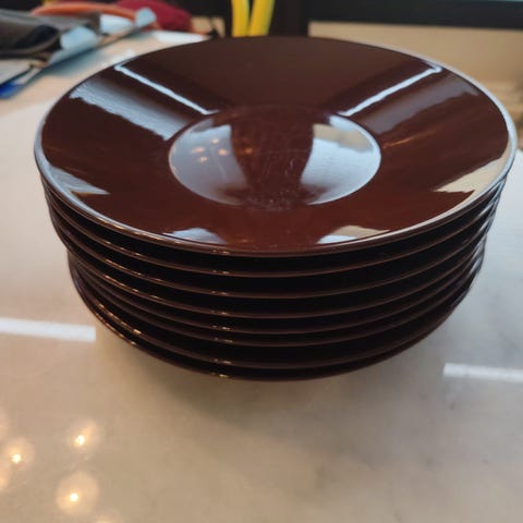 Käytettyjä aqua värisiä 23 cm halkaisijalla olevia lautasia kuusi kappaletta. Käytetty naarmuinen kunto. Toivottavasti kuvat näyttävät "todellisen luonteen".