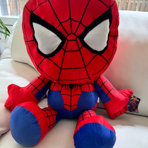 Hetken koristeena hyllyllä ollut Spiderman pehmolelu. Korkeus n 30cm.
