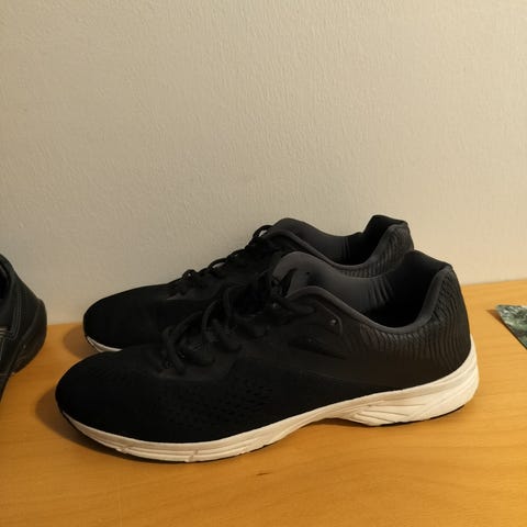 Hiilikuiturodeilla olevat juoksukengät. Juostu muutama lenkki ja itselle liian isot.