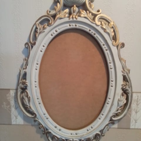 Todella upea vintage taulunkehys jossa todella näyttävä koristeellinen osuus ja kultainen raita ympäröi kehyksiä . Kehyksen mitat ovat : 37x42cm