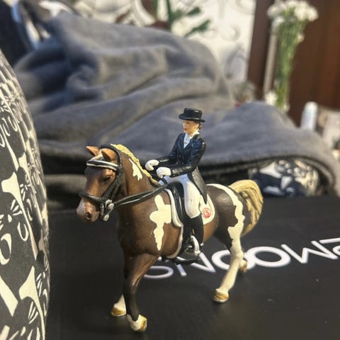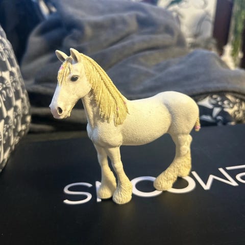 Schleich shetlanninponi 2004, riimu ja valjaat. Kärryt puuttuu. Tosi hyvässä kunnossa.