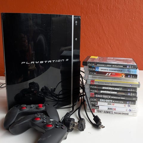 Sony PlayStation 3 pelikonsoli. Sisältää pelikonsolin ja 3 ohjainta. Edessä 2 usb porttia. En postita.