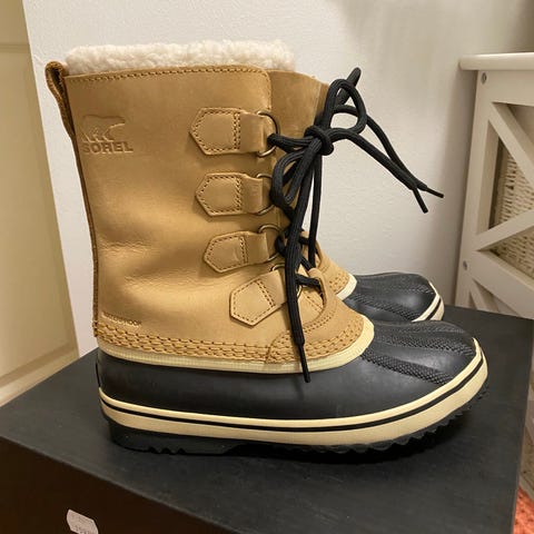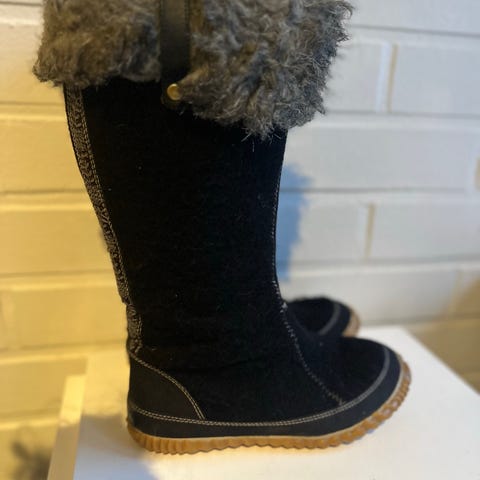Sorel saappaat koossa 38, musta väri. Saappaissa on vedenpitävä materiaali ja lämmin vuori, soveltuvat kylmiin ja kosteisiin olosuhteisiin.