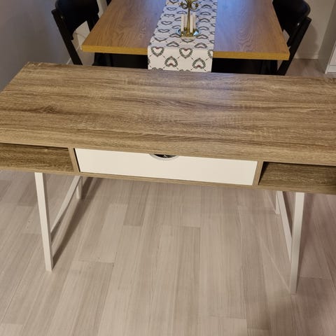 Pöydän pinnassa pieniä jälkiä, joita en ole saanu pyyhkimällä pois. Ei vaikuta käyttöön.