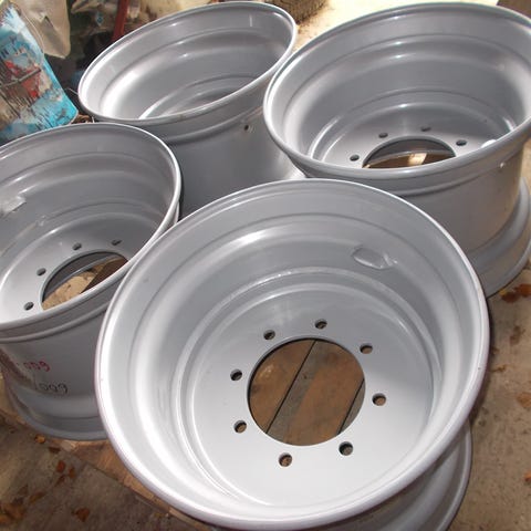 Kuvassa 2) 2 kpl erikoisvahvat vanteet 22,5" 8-pulttisella vakiojaolla. Hinta 220e.