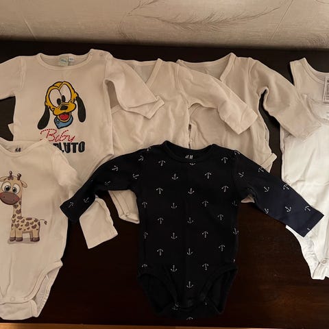 Hyväkuntoisia vauvan vaatteita.