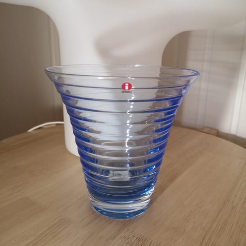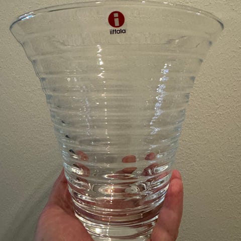 Myydään käyttämätön Iitallan kirkaslasinen Aino Aalto -maljakko (16,5 cm). Hinta 30€. Vain nouto.