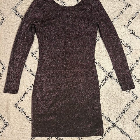 Musta glittermekko, sopii hyvin esim uuteen vuoteen. Avoin selkä. Ei vikoja. Ollut kahdesti käytössä.