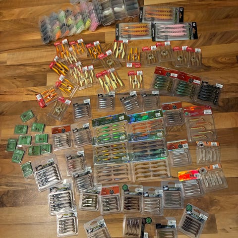 On esim KP Baits hybrid worm 4", original shad 2,5", Shaker Baits Piggy shad 5", mikado fishunter 2" ja fishunter tt 3", Veka 4", Mikado Fish Fry 2", Westin Stickleback Shadtail 3", Savage Gear Craft Cannibal Paddletail 2", Storm So-Run Joker Shad 9", Wake Pelagear 8", Microbite Decapod rapujigit, Lunker City Hellgie 3" + muita...