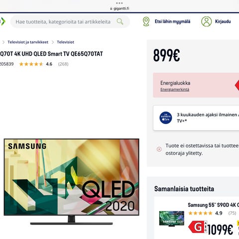 Myydään tarpeettomana kyseinen Samsungin älytelevisio. Ostettu marraskuun lopussa eli käytännössä uusi.