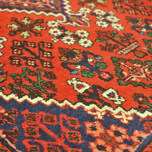 Erityistä: Kaikkein korkealaatuisin ns. kork-villa, jossa sileän pehmeä kosketustuntuma. Qomin matoille tyypillinen laadukas solminta ja taidokkaan tasapainoinen kuviointi. Harvinaisehko pistaasinvihreä pääkentän pohjaväri.