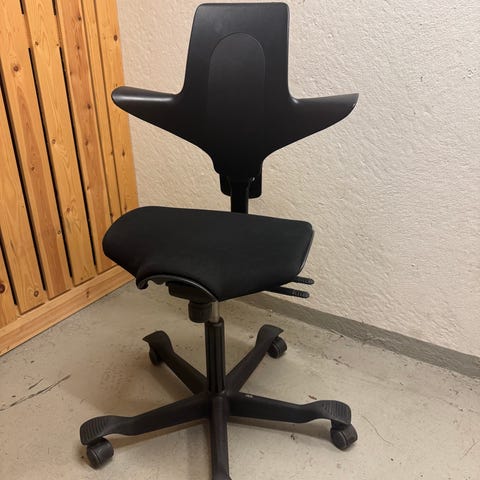 Myydään hyväkuntoinen HÅG Capisco -työtuoli niskatuella ja litteällä istuimella. Säädettävä ja ergonominen, sopii hyvin myös seisomatyöpisteelle. Toimii moitteettomasti. Nouto Kalasatamasta.