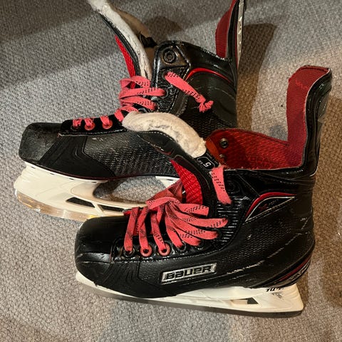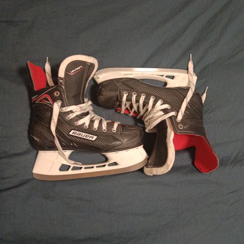 Hyvät Bauerin luistimet erittäin hyvillä terillä. Koko 37,5. Mainiot luistimet vaikkapa aktiivipelaajan ulkojääluistimiksi.