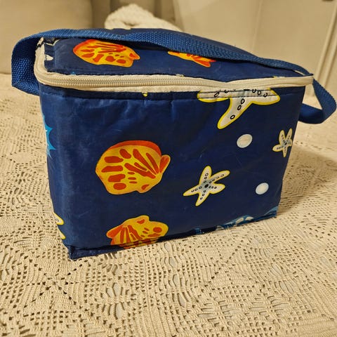 Keltainen kylmälaukku tölkeille tai pulloille. Kangasta, eli ei vie paljoa tilaa säilytystä ajatellen. Katso mitat kuvista. Mahtuu useita tölkkejä ja on loistava esim.opiskelijabileisiin tai kesällä piknikille. Kantohihna ja 2 vetoketjua. Jotain likaa vetoketjun vieressä, ei ole yritetty poistaa, mutta ei haittaa käyttöä.