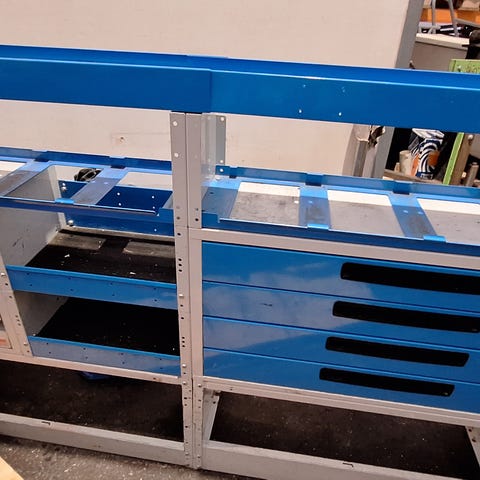 Laatikko pakettiautokäyttöön. Leveys 98 cm, syvyys 49 cm, korkeus 27 cm.