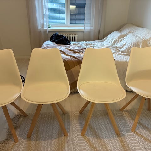 Vekestä ostetut ruokatuolit. Väri tummanharmaa. Hyvä kunto, vaikka yhdessä pieni jälki (katso viimeinen kuva). Ovh. 80€/kpl eli yht. 320€.