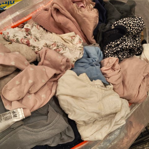 Iso paketti vauvan vaatteita, kaikki yhdessä 170 €, ilman laatikkoa. Voit tehdä tarjouksen