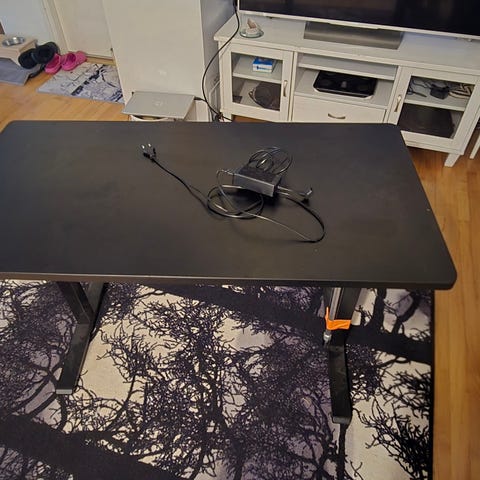Myydään musta sähköpöytä suoraan käytöstä. Pöydän kannessa hieman pikaliimaa, näkyy kuvassa.