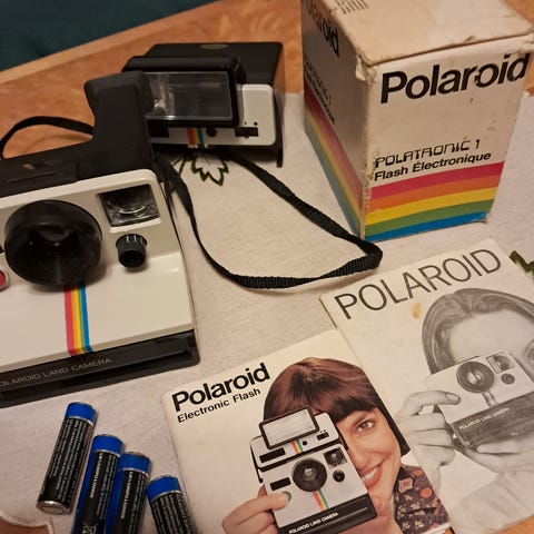 Polaroidin vanha kamera. En ole ikinä kuvannut niin toimivuudesta ei tietoa.