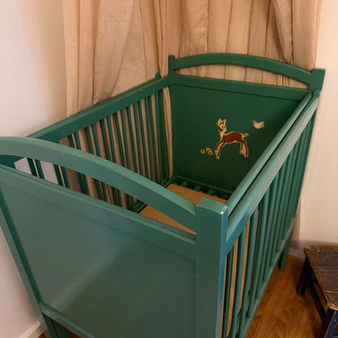 Maalautettu ammattilaisella vuonna 2024 ja silloin tarkastettu liimaukset yms. Taaperolla kuitenkin sen verran kengurumeinikiä, että pomppi pohjan tukirimat halki. Rimat täytyisi siis liimata ja tukea (tai kokonaan uusia jos taaperoikään saakka käytössä).