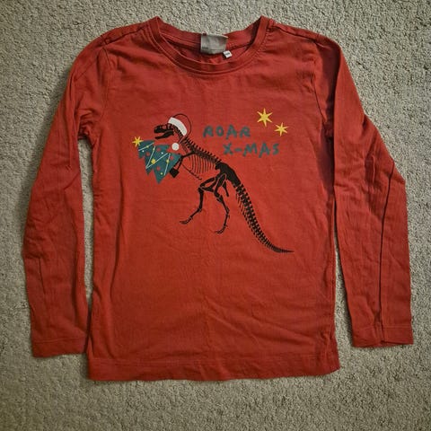 Myydään dinosaurusaiheinen joulupaita. Siisti kunto. Merkki Kappahl. Koko 122.
