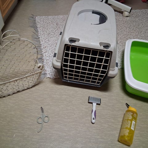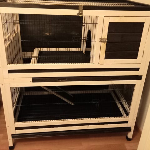 Eläintarvikkeet sisältävät ruokakupit, lelun, kantokopan, heinätelineet ja häkin. Kantokoppa on muovinen, väriltään valkoinen ja ruskea, metallisella ovella. Häkki on metallinen, väriltään valkoinen. Mukana on myös ruokakuppeja ja leluja. Meidän pupun käytössä kaikki toimi mainiosti. Häkkiä ei tule kuitenkaan käyttää lemmikkipupun asumiseen, vaan lähinnä ruokintapaikkana. Meillä häkki toimi vain vessana ja keittiönä.