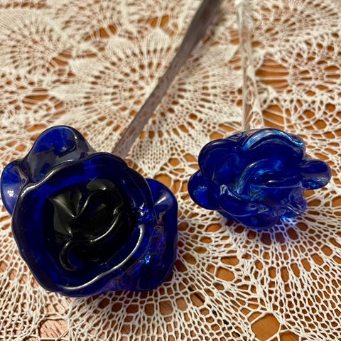 MYYDÄÄN KAUNIIN SININEN LASIKUKKA.