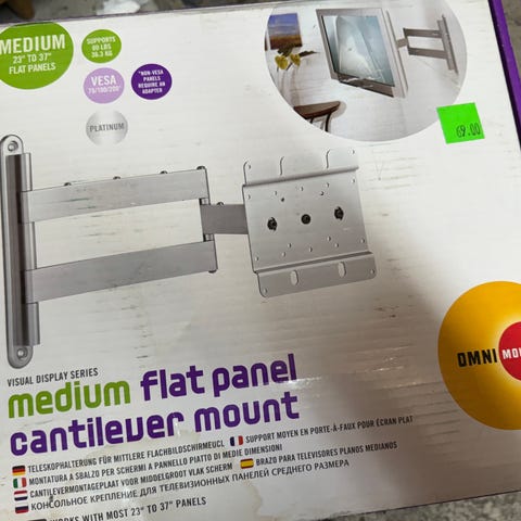 Jämäkkä teline painavammankin television kiinnittämiseen. Kääntyy sivuille ja alaviistoon. Mukaan tietenkin pussillinen ruuveja yms. kiinnitysosia erilaisten televisioiden kiinnittämiseen.