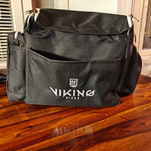 Hyvässä kunnossa oleva frisbeegolfkassi ei käytön jälkiä.