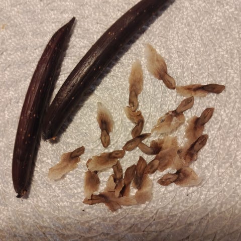 Kuvissa näkyvät kaksi peperomia pistoa, molemmat aloittelee juurtumista. Toisella hyvä tasainen väritys, toisella huonompi, joka todennäköisesti latvan leikkaamalla lähtee korjaantumaan.