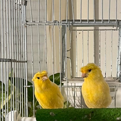 Haussa 5 iäkkäämmän kanarialinnun seuraksi jättihäkkiin nuorehkoja kanarialintuja. Linnut saavat päivittäin lentää vapaana. Naaraat ja urokset ok. Haemme edullisesti Satakunnasta.