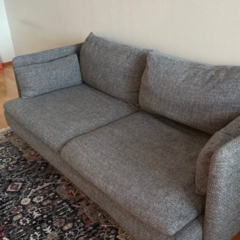 Myynnissä erittäin suuren suosion saavuttanut Ikean Söderhamn sarjan 3:n istuttava sohva, 2 x divaani ja 2 x käsinoja. Tämän kokoista ryhmää erittäin harvoin tarjolla. Ryhmän runko on ehjä. Päällisten väri: Isunda harmaa. Ryhmän kaikki päälliset ovat irroitettavissa pesuun. Runkojen päälliset mukaan lukien. Lisäksi päälliset ovat halutessaan vaihdettavissa. Huomioitavaa päällisten kunnossa: Uutta etsivä voi divaanien istuintyynyissä huomata minimaalisen pientä kyseiselle kankaalle tyypillistä tummumaa. Tämä huomioitu hinnassa. Sohvan hinta: 779e.