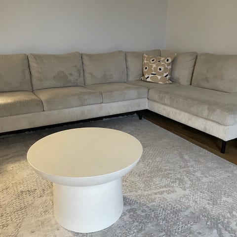 Myynnissä todella ISO, nykyaikainen ja näyttävä divaanisohva. Sohvan runko on ehjä. Istuin ja selkätyynyjen kankaat ovat irroitettavissa pesuun. Istuintyynyt ovat rungossa kiinni tarrakiinnityksellä. Tämän ansiosta istuintyynyt pysyvät paikoillaan loistavasti. Sohvassa divaanin puolisuus kuvien mukainen, Ei vaihdettavissa. Sohvassa ei ole vuodeominaisuutta. Huomioithan sohva istuinsyvyyden. Tämä sohva ei ole missään nimessä jämäkkää / ryhdikästä istuinmukavuutta etsivän valinta. Tämä sohva soveltuu ennemminkin rentoa "löhö" sohvaa etsivälle. Huomioitavaa runkorakenteesta: Sohva on erittäin leveä ja sohva suhteellisen siro. Tästä johtuen selkänoja keskeltä aavistuksen "hutera". Sohvan runkorakenne ei mitä luultavammin kestä kovaa rasitusta sohvan ollessa keskellä huonetta. Sohvan kunnossa ei negatiivista huomautettavaa sohvan ollessa seinää vasten. Sohvan hinta: 649e. Hinta tiputettu. Uusi hinta: 569e.